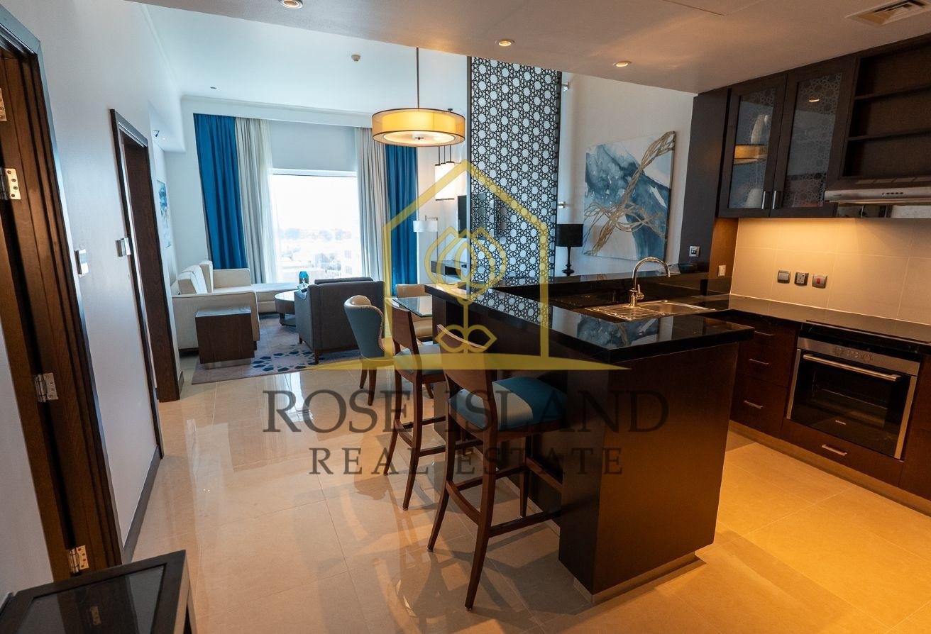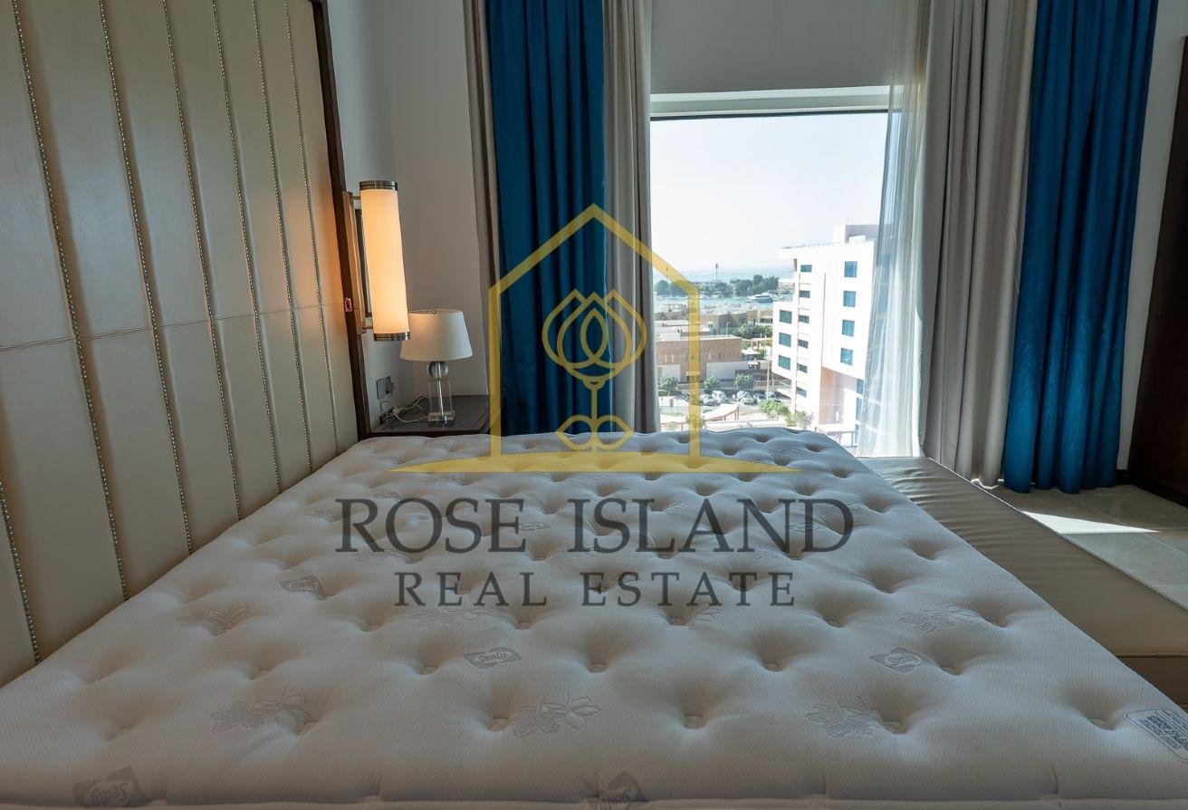 This fully furnished apartment is a rare high-floor apartment and includes a large balcony with breath-taking views overlooking the Emirates Palace Hotel and the Presidential Palace as well as the deep blue Arabian waters.