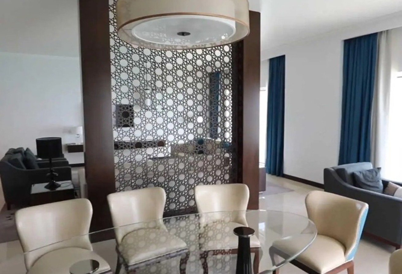 This fully furnished apartment is a rare high-floor apartment and includes a large balcony with breath-taking views overlooking the Emirates Palace Hotel and the Presidential Palace as well as the deep blue Arabian waters.